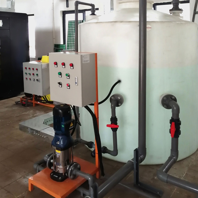 酸洗:發生器累計運行250小時需酸洗次,根據水質情況相應延長或縮短酸洗周期,酸洗時,先打開所有排空閥門,把管道中的積存鹽水排掉,然后打開進酸閥門和出酸閥門,直到出酸放空管有機管流出酸水后,關閉進酸閥門,待酸水在電管中浸泡1—2小時后再把酸水排掉,然后再反沖洗次,般稀鹽酸調配濃度為10%左右。